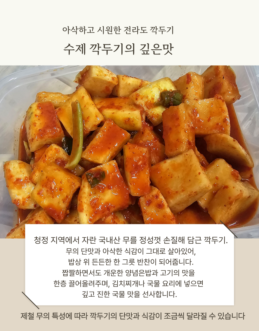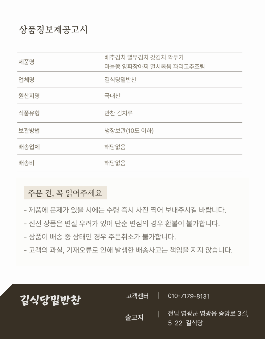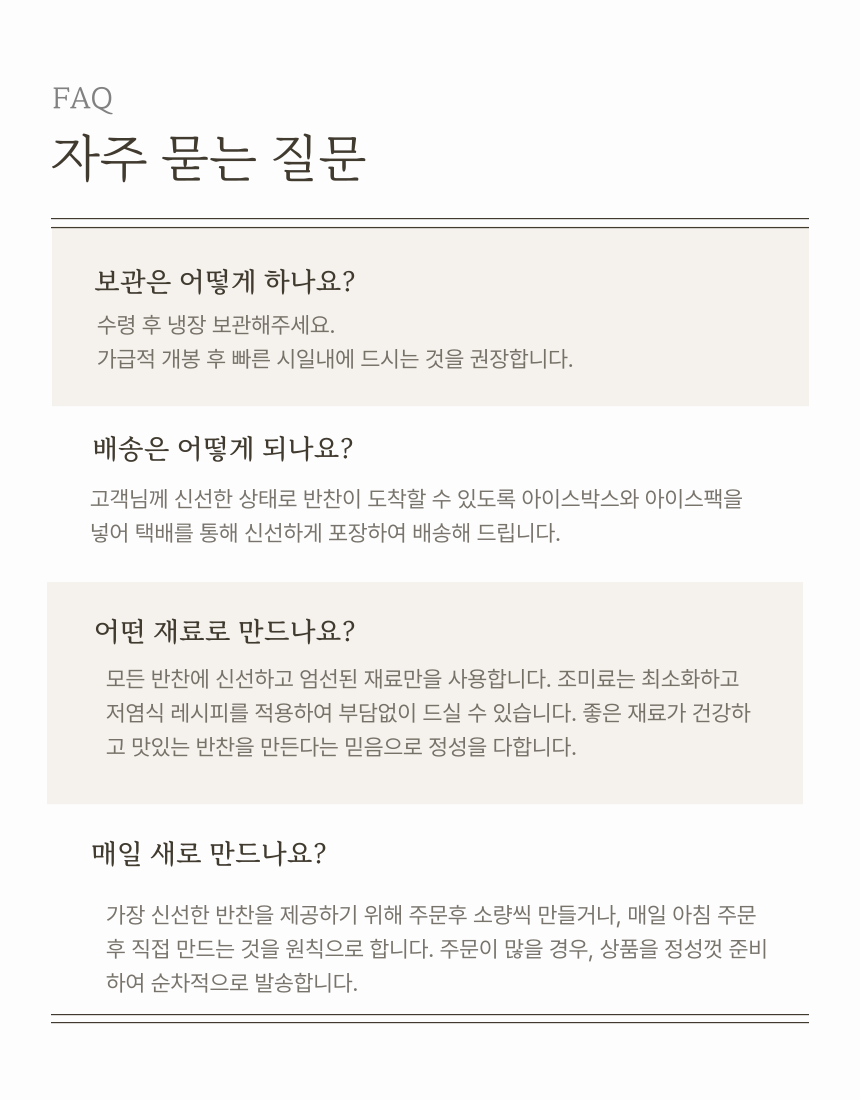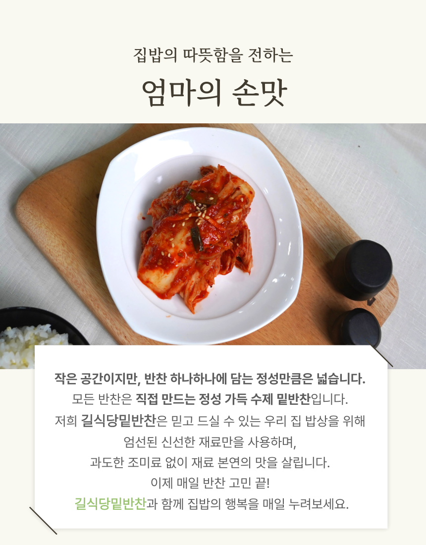 국내산 재료에 엄마 손맛 그대로, 배추겉절이,깍두기,열무,멸치볶음 마늘쫑조림, 집밥의 따뜻함을 전합니다. (39)