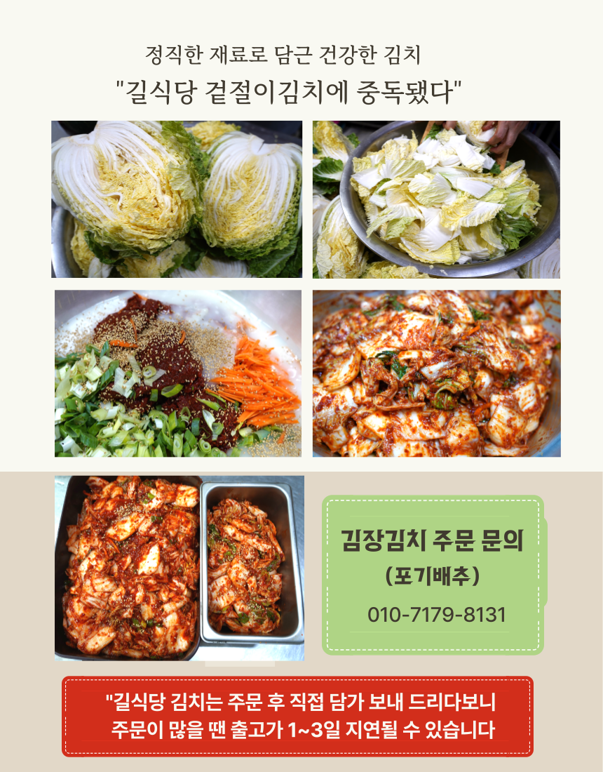 길식당 [길식당밑반찬] 배추겉절이 1kg + 무갓김치 1kg