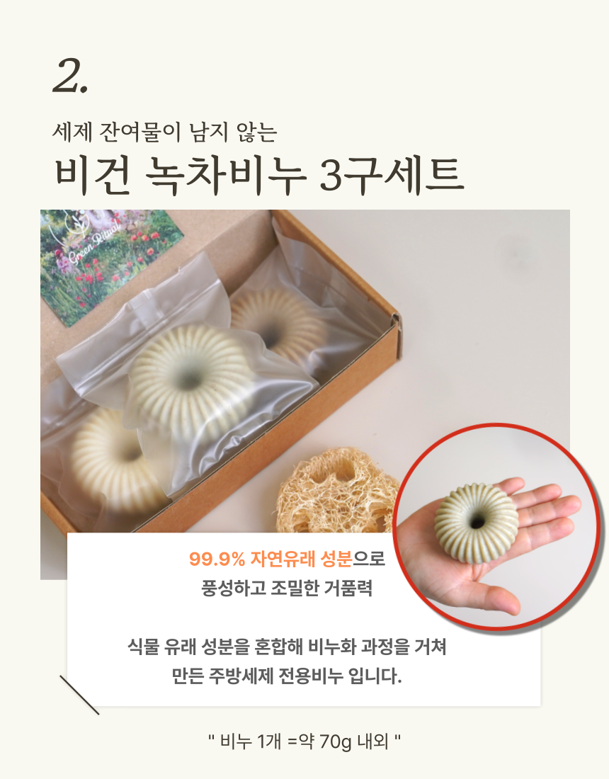 비건 설거지 녹차비누 130g, 비누세트 2종 - 장날닷컴, 전라남도 로컬푸드 온라인 직매장