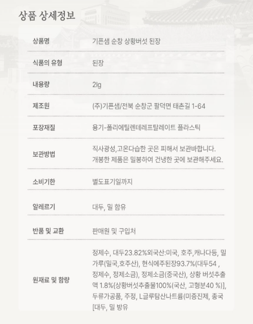 참조은유통 기픈샘 순창 상황버섯 된장 2kg - 장날닷컴, 전라남도 로컬푸드 온라인 직매장