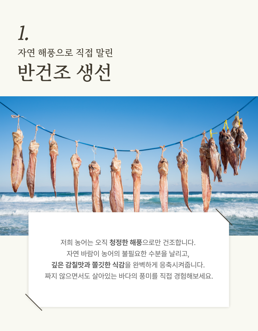 청정바다에서 신선한 농어를 반건조 방식으로 정성껏 말려 쫀득하고 풍부한 살점이 일품인 생선!!! (0)