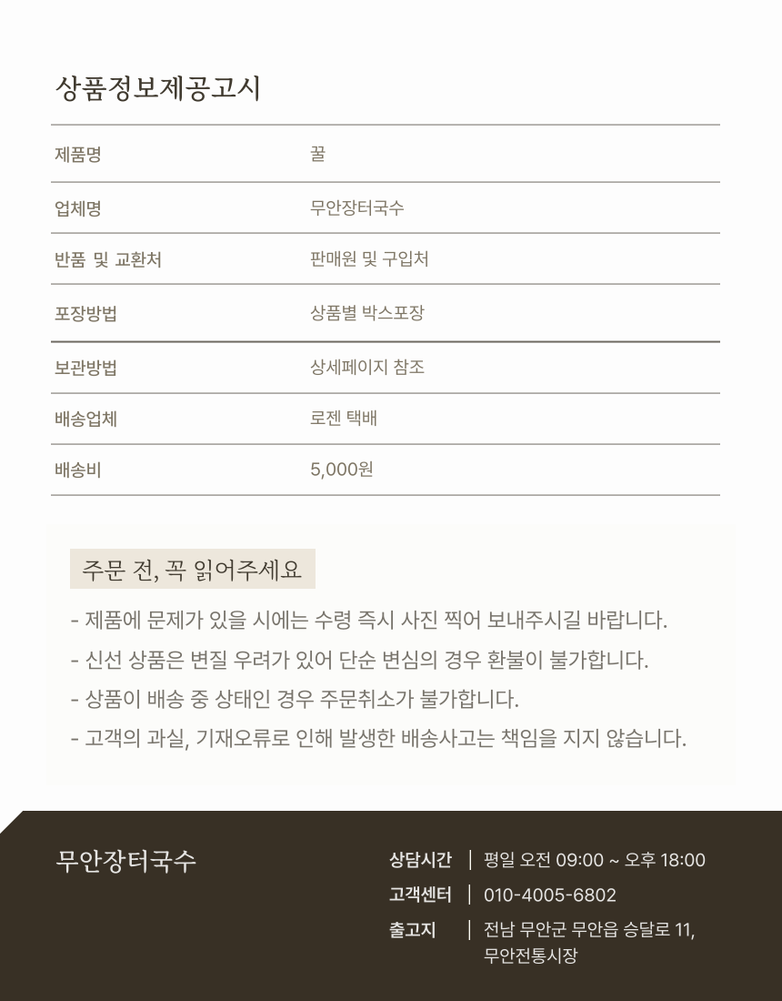 무안장터국수 천연 아카시아 벌꿀 1kg