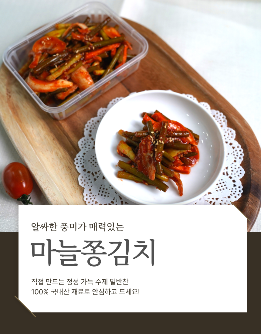 청정지역에서 자란 통통하고 신선한 마늘쫑만을 엄선하여 아삭한 식감과 마늘쫑 특유의 풍미가 살아있어 밥상 위의 특별한 별미를 선사하는 마늘쫑 장아찌입니다 (0)