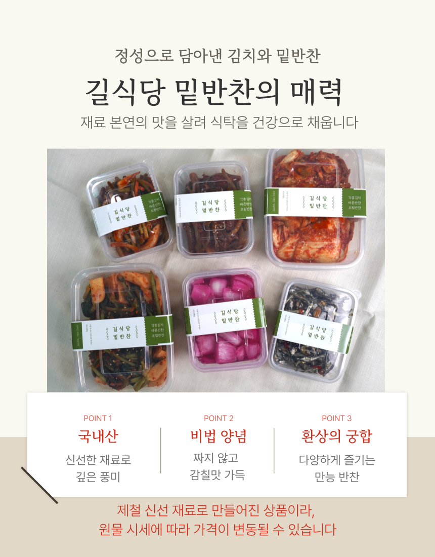 국내산 재료에 엄마 손맛 그대로, 배추겉절이,깍두기,열무,멸치볶음 마늘쫑조림, 집밥의 따뜻함을 전합니다. (39)