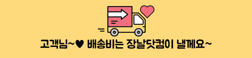 당일 오전 10시까지 입금 확인된 제품은 당일 배송됩니다. 토요일, 일요일 및 공휴일은 휴무입니다. 파손된 제품은 무료 교환/반품 가능합니다.