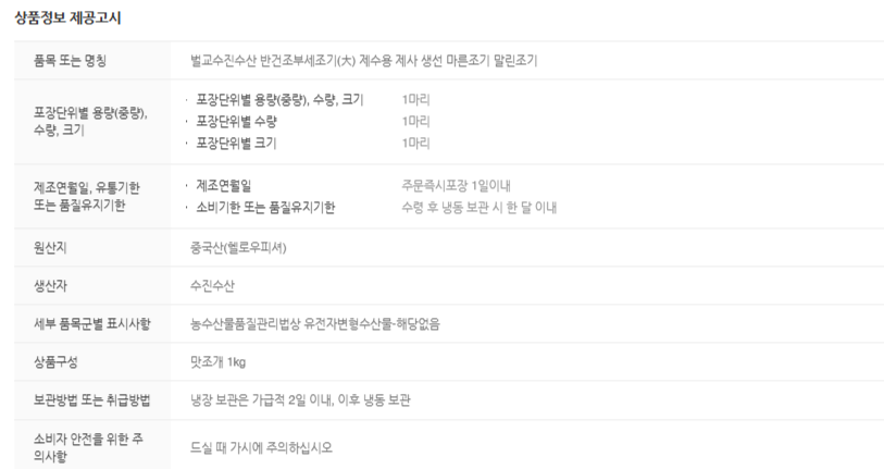 벌교수진수산 벌교수진수산 반건조부세조기(大,小) 제수용 제사 생선 마른조기 말린조기