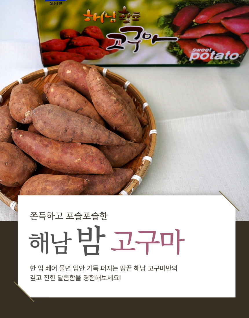 자연이 키운 달콤함! 해남의 따사로운 햇살을 머금고 자란 진짜 꿀고구마, 지금 만나보세요. (0)