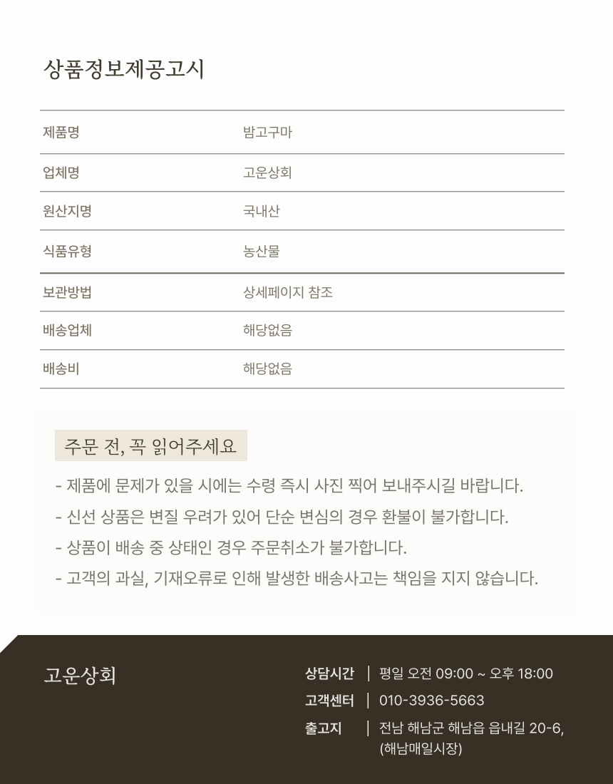 고운 해남 자연의 단맛, 밤고구마 특+상 5kg