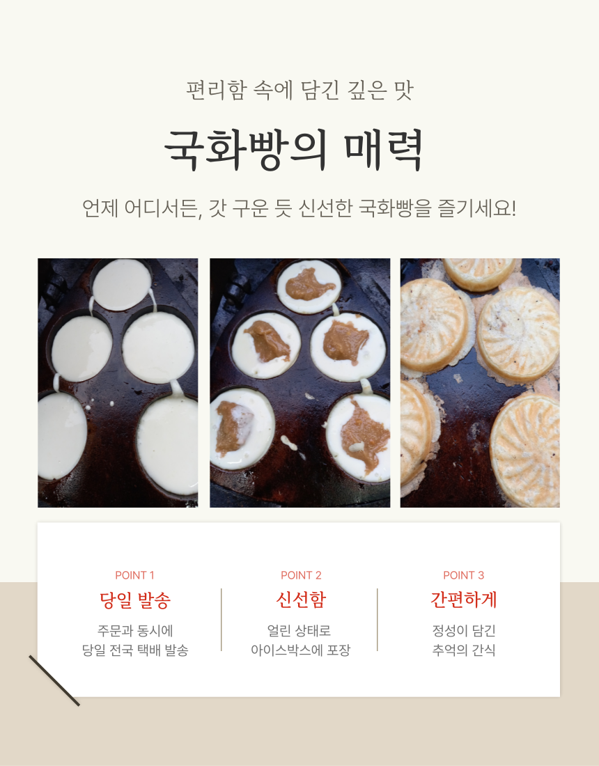 해남원조국화빵 겉바속촉! 해남 원조 국화빵 (3개 1,000원)