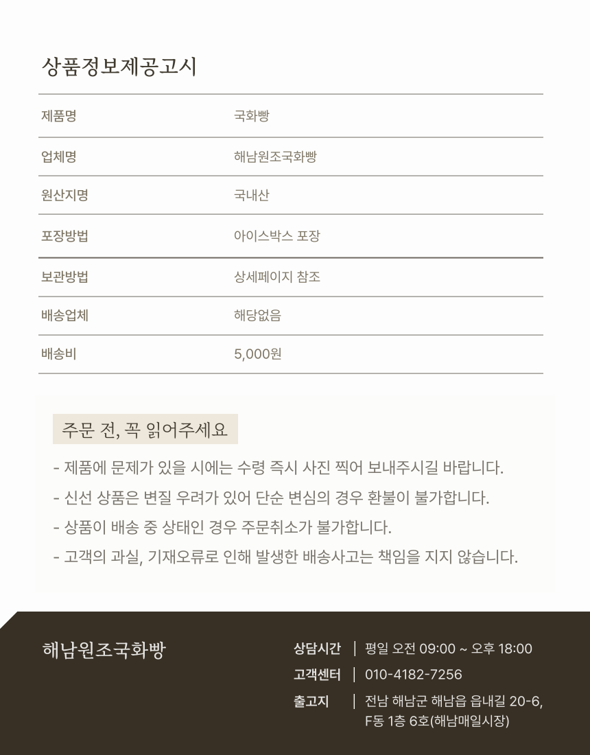 해남원조국화빵