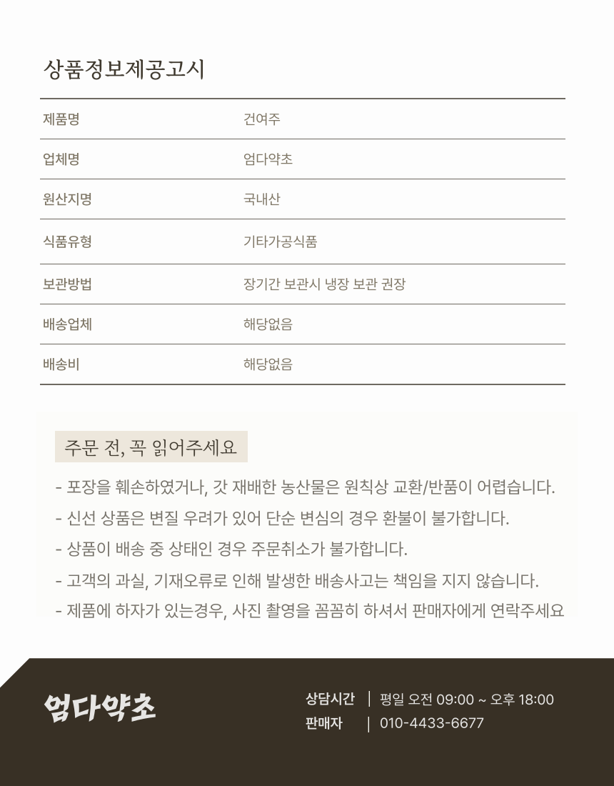 품질보증 기준에 관하여, 전자상거래 법 등에서의 소비자 보호에 관한 법률로 규정되어 있는 소비자 청약 처리 가능 범위에 해당하는 경우에 한하여 반품/ 교환 신청을 처리해 드리고 있습니다. 상품 하자 시 판매자와 필히 연락하셔야 하며 임의로 반품할 시엔 왕복 택배비가 고객님께 부과됨을 알려드립니다. 교환 및 반품은 판매자와 통화 후 수령일로부터 7일 이내에 발송해 주셔야 합니다.