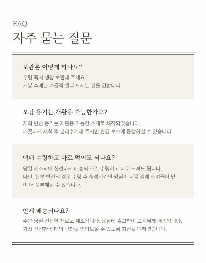 신선한 재료들이 조화롭게 어우러져 깊은 풍미는 밥맛을 더욱 돋우고, 어떤 음식과 곁들여도 환상의 궁합을 자랑하는 칠게장입니다 (0)