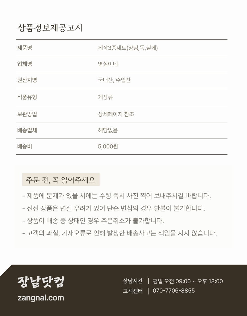 게장 3종세트(양념게장 700g +,독게장 700g + ,칠게장 700g) - 장날닷컴, 전라남도 로컬푸드 온라인 직매장