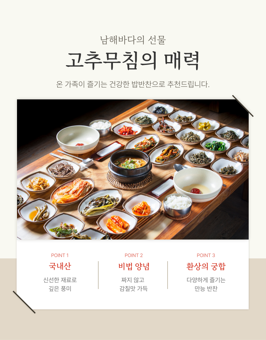 신선한 재료들이 조화롭게 어우러져 깊은 풍미는 밥맛을 더욱 돋우고, 어떤 음식과 곁들여도 환상의 궁합을 자랑하는 고추장아찌 입니다 (0)