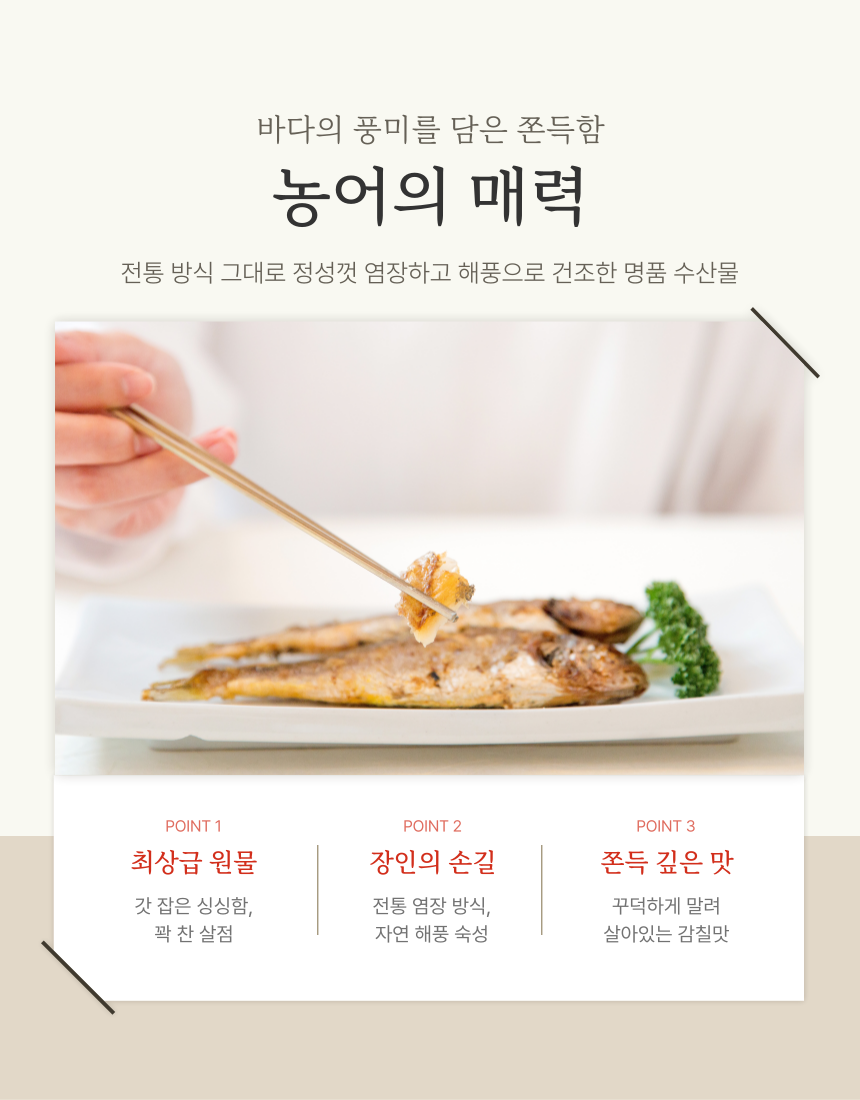 청정바다에서 신선한 농어를 반건조 방식으로 정성껏 말려 쫀득하고 풍부한 살점이 일품인 생선!!! (0)